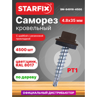 Купить Саморез кровельный 4,8х35 мм цинк шайба с прокладкой PT1 RAL 8017 STARFIX 4500 штук (SM-84916-4500) с доставкой по всей России. Саморез кровельный 4,8х35 мм цинк шайба с прокладкой PT1 RAL 8017 STARFIX 4500 штук (SM-84916-4500): сравнение цен, характеристики, фото, актуальное наличие и цены.