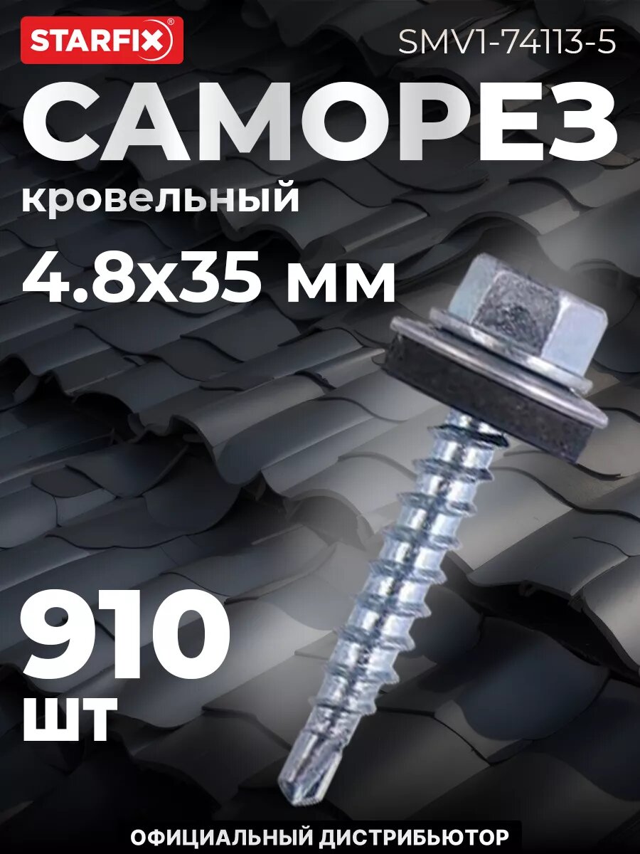 Саморез кровельный 4,8х35 мм цинк шайба с прокладкой PT3 STARFIX 5 кг (SMV1-74113-5): сравнение цен, характеристики, фото, актуальное наличие и цены.