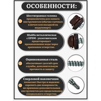 Головка самореза имеет шестигранную форму, что обеспечивает удобство и надежность при монтаже.