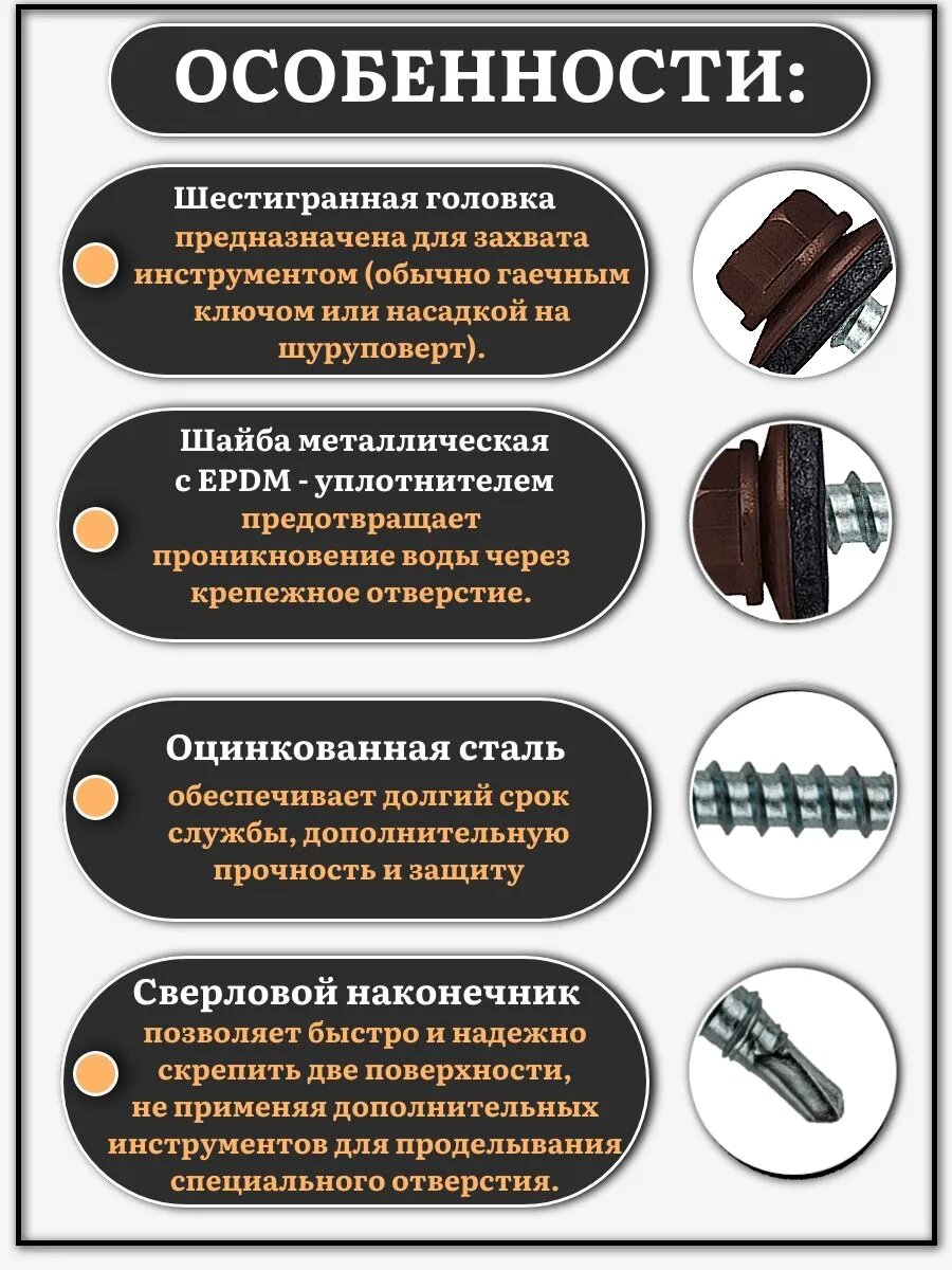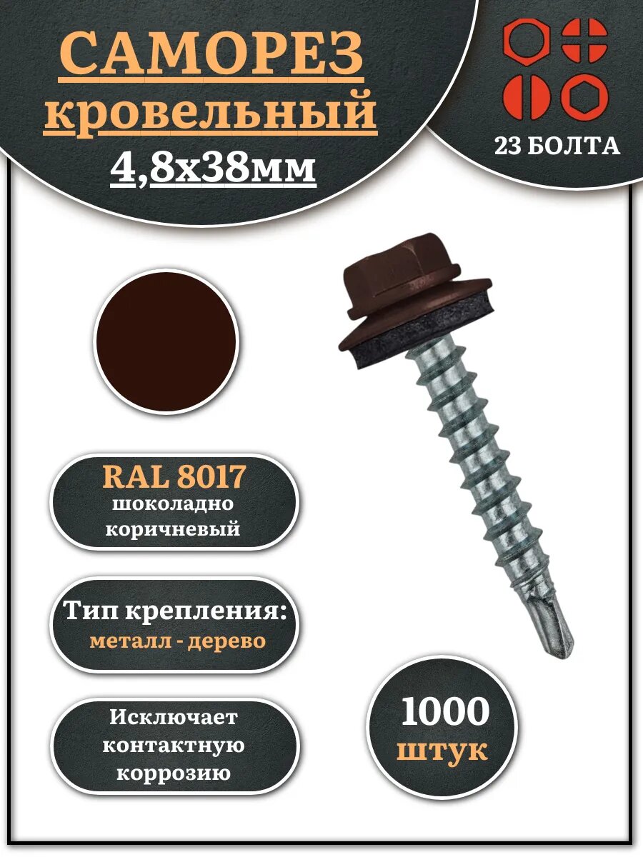 Выбирая саморез кровельный 4,8х38 шоколадно-коричн. RAL8017 1000шт, вы получаете надежный и качественный продукт, который обеспечит долговечность и прочность вашей кровли.