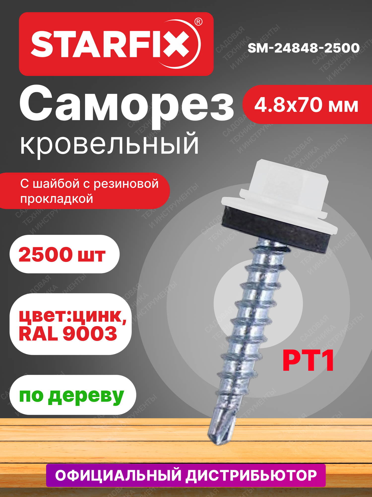 Купить Саморез кровельный 4,8х70 мм цинк шайба с прокладкой PT1 RAL 9003 STARFIX 2500 штук (SM-24848-2500) с доставкой по всей России. Саморез кровельный 4,8х70 мм цинк шайба с прокладкой PT1 RAL 9003 STARFIX 2500 штук (SM-24848-2500): сравнение цен, характеристики, фото, актуальное наличие и цены.