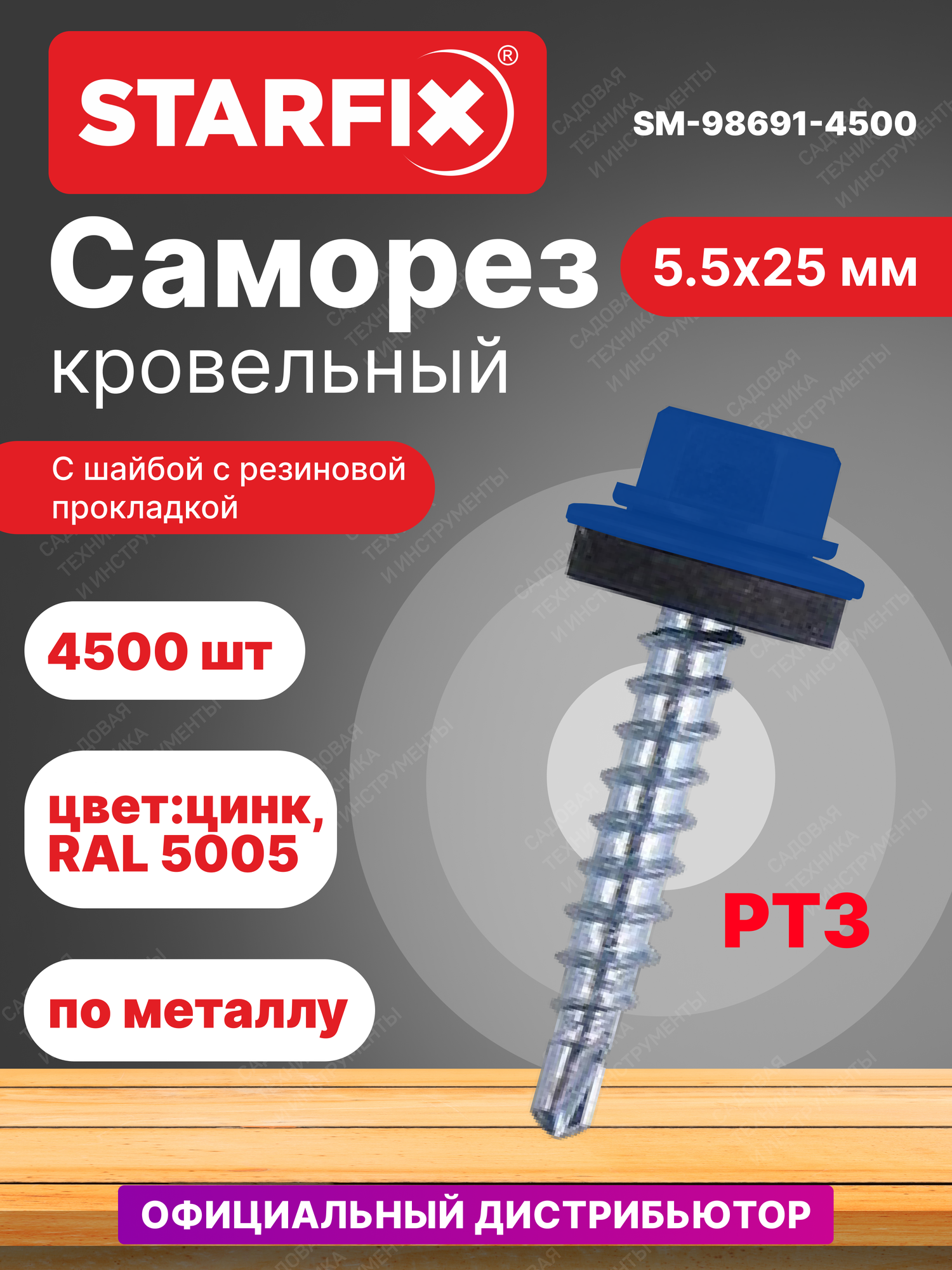 Саморез кровельный 5,5х25 мм цинк шайба с прокладкой PT3 RAL 5005 STARFIX 5000 штук (SM-98691-4500): сравнение цен, характеристики, фото, актуальное наличие и цены.