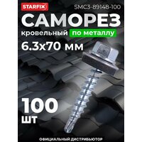 Саморез кровельный 6,3х70 мм цинк шайба с прокладкой PT3 STARFIX 100 штук (SMC3-89148-100): сравнение цен, характеристики, фото, актуальное наличие и цены.