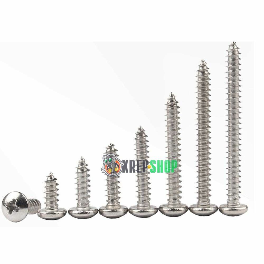 Саморез по металлу с полукруглой головкой и шлицем типа H (DIN 7981) — самонарезающий винт с полной резьбой и полусферической шляпкой с крестообразным углублением под отвертку или биту шуруповерта. Может устанавливаться без предварительного засверливания (кроме металла). Широкая головка обеспечивает плотный прижим деталей и герметичность посадочного канала.