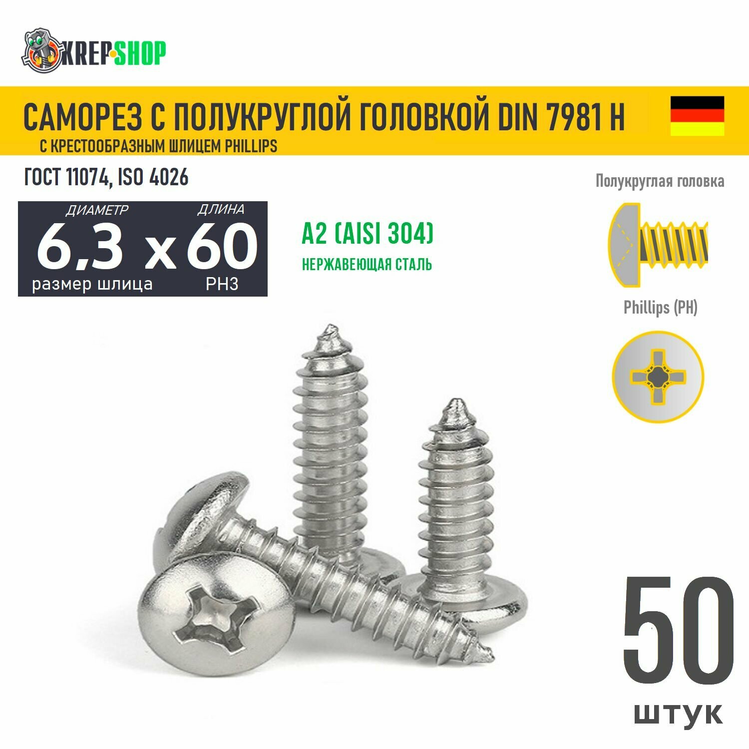 Купить Саморез п/кр. 6.3х60 под кр. PH нерж. А2 DIN 7981 H, 50 шт с доставкой по всей России. Саморез п/кр. 6.3х60 под кр. PH нерж. А2 DIN 7981 H, 50 шт: сравнение цен, характеристики, фото, актуальное наличие и цены.