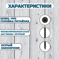 Изготовленные из углеродистой стали, эти саморезы проходят процесс фосфатирования, что обеспечивает их устойчивость к коррозии и продлевает срок службы.
