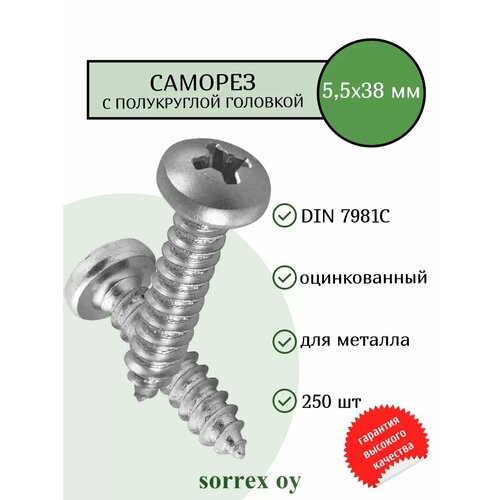 Купить Саморез по металлу с полукруглой головкой 5,5×38 DIN 7981С оцинкованный с острым наконечником (250 штук) Sorrex OY с доставкой по всей России. Саморез по металлу с полукруглой головкой 5,5×38 DIN 7981С оцинкованный с острым наконечником (250 штук) Sorrex OY: сравнение цен, характеристики, фото, актуальное наличие и цены.