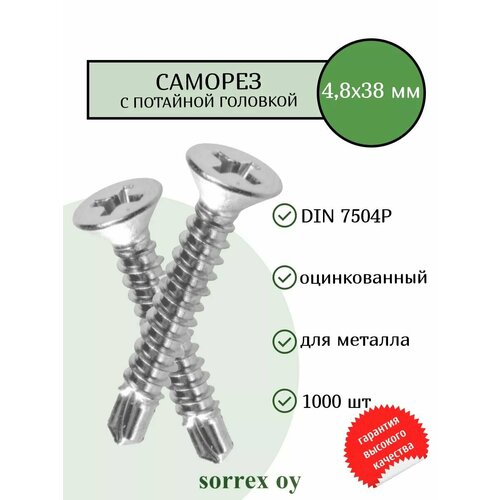 Купить Саморез по металлу с потайной головкой 4,8×38 DIN 7504P оцинкованный со сверловым наконечником (1000 штук) Sorrex OY с доставкой по всей России. Саморез по металлу с потайной головкой 4,8×38 DIN 7504P оцинкованный со сверловым наконечником (1000 штук) Sorrex OY: сравнение цен, характеристики, фото, актуальное наличие и цены.