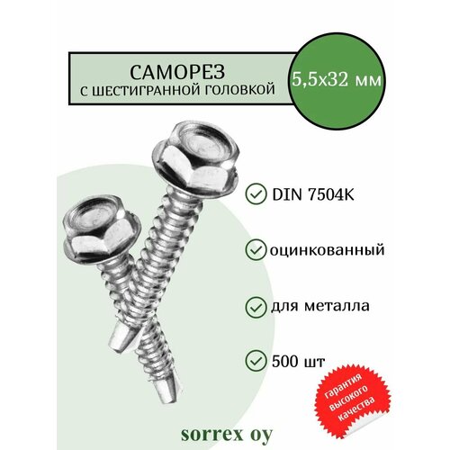 Купить Саморез по металлу с шестигранной головкой М5,5х32 DIN 7504K оцинкованный со сверловым наконечником (500 штук) Sorrex OY с доставкой по всей России. Саморез по металлу с шестигранной головкой М5,5х32 DIN 7504K оцинкованный со сверловым наконечником (500 штук) Sorrex OY: сравнение цен, характеристики, фото, актуальное наличие и цены.
