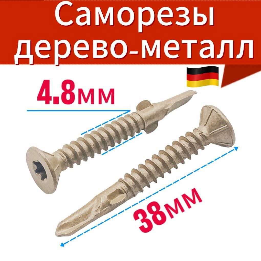 Саморез флюгель 4,8х38-это специальный вид шурупов, предназначенный для надежного и прочного крепления деревянных элементов к металлическим поверхностям. Он имеет специфическую форму и конструкцию, которая обеспечивает качественное и долговечное соединение дерева с металлом.