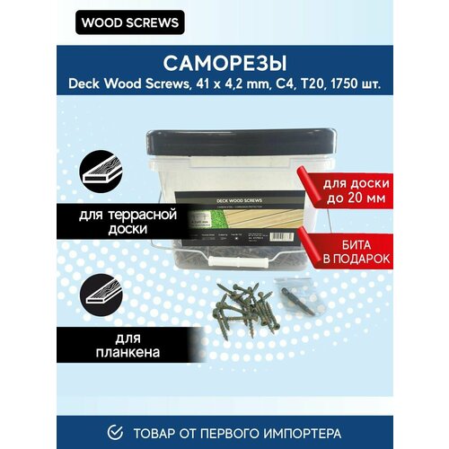 Саморезы Finka Deck Wood Screws 41×4,2 mm C4 T20 1750 шт, для открытого крепежа террасной доски: сравнение цен, характеристики, фото, актуальное наличие и цены.