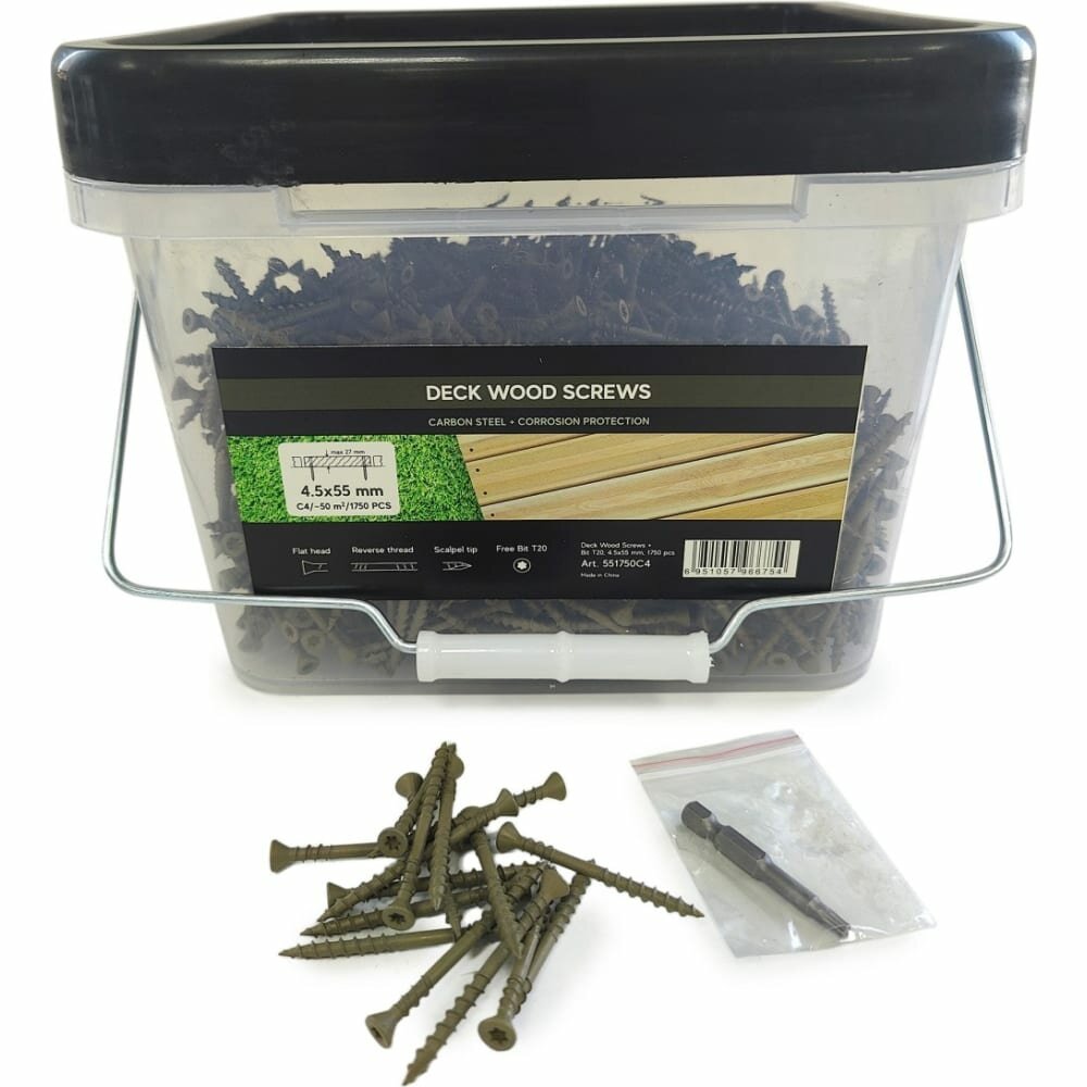 Саморезы для монтажа террас и фасадов Camo Deck Wood Screws 55×4,5 mm, C4, T20 1750 шт, с антикоррозийным покрытием, арт. 551750C4: сравнение цен, характеристики, фото, актуальное наличие и цены.
