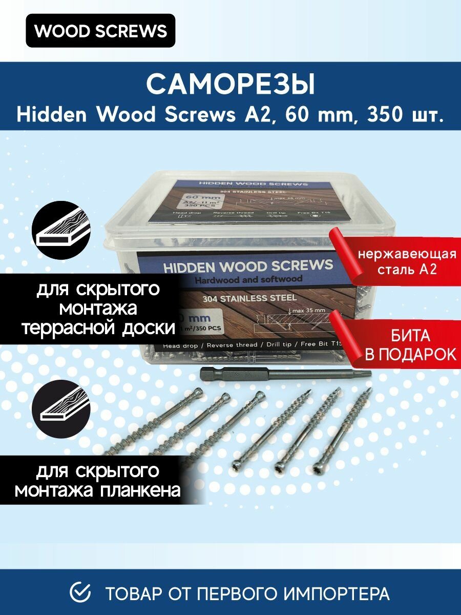 Саморезы А2 из нержавеющей стали класса AISI304 предназначены для крепления террас и фасадов из дерева. Супер прочные. Двойная резьба. Не колют доску, не оставляют заноз. Предназначены для твердых пород древесины, таких как лиственница, дуб и пр. Саморезы 60 мм — предназначены для крепления досок толщиной 27–35 мм.