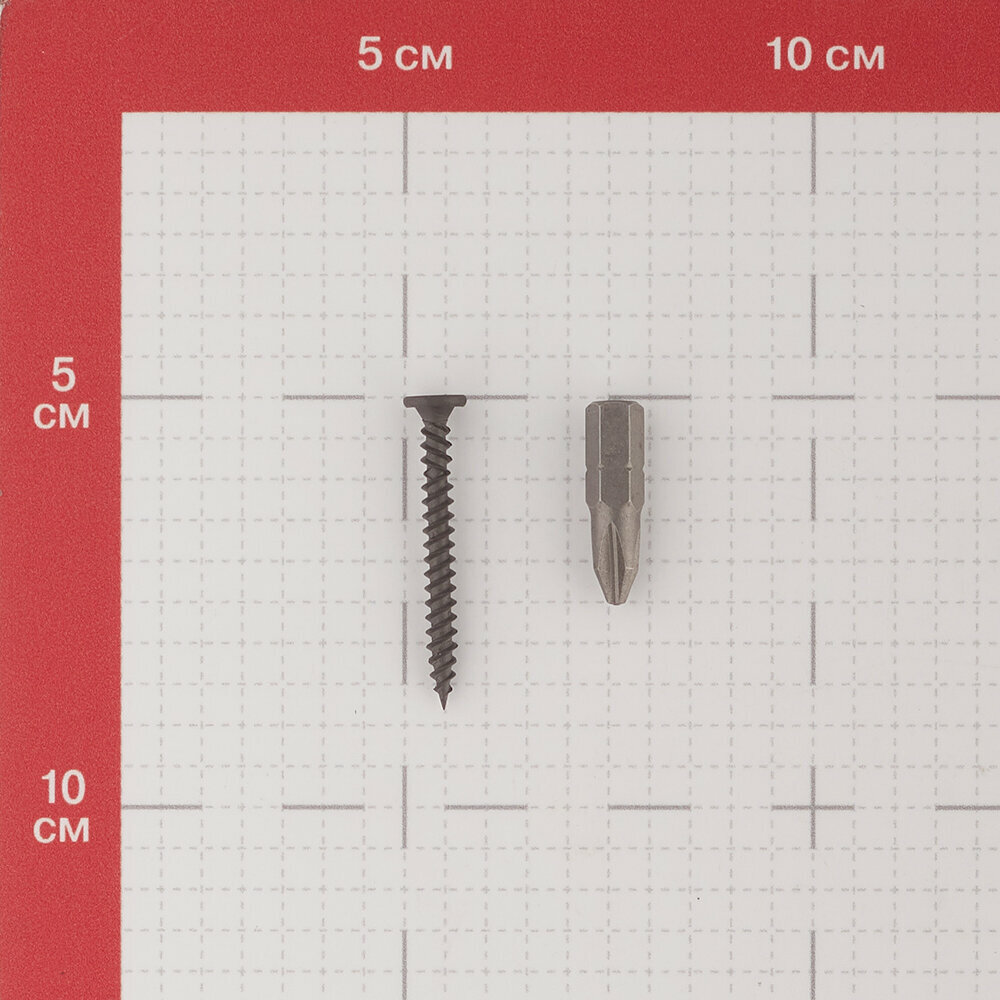 Предназначены для крепления однослойных и двухслойных конструкций (перегородки, облицовки, потоки). Шуруп с головкой потайной формы, с крестообразным шлицем и острым концом. В комплект входит бита РН2.