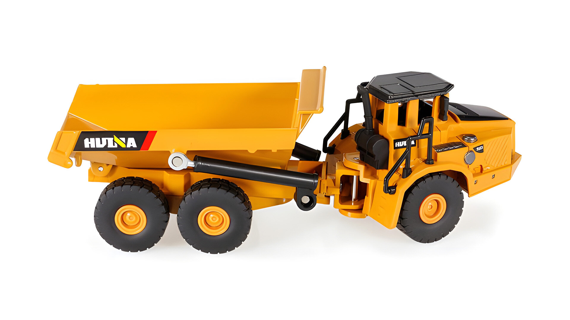 Металлическая модель самосвала Huina HN1712, которая станет отличным дополнением в коллекцию уменьшенных копий спецтехники. Модель выполнена в масштабе 1:50 с высокой точностью передачи оригинальных пропорций и особенностей дизайна. Цветовая гамма контрастных цветов привлекает к себе внимание. Через прозрачные окошки можно разглядеть кабину водителя, а вращающиеся части добавят интерактивности в игру. Приобретая другую технику этой линейки, можно собрать целую стройку! Характеристики: масштаб: 1/50 размер: 200 x 100 x 50 мм материал: металл, пластик.