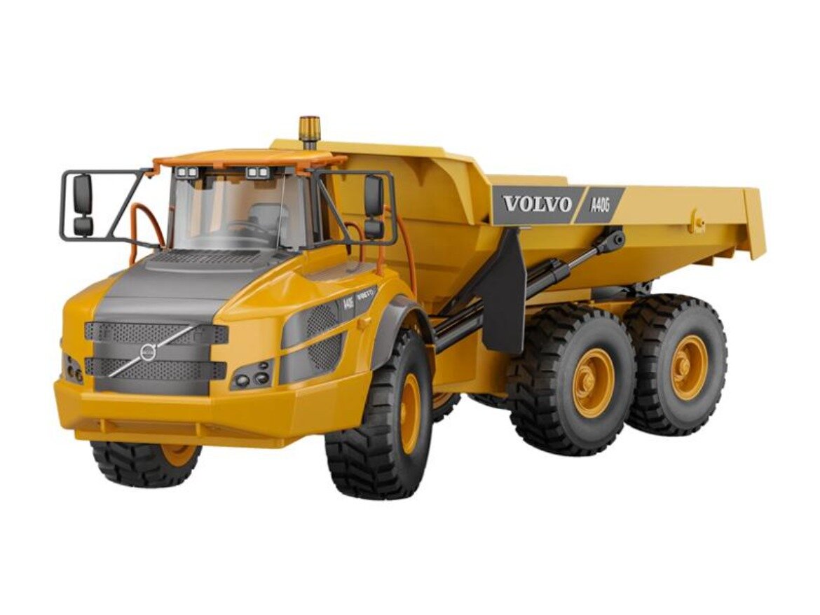 Самосвал на радиоуправлении Double E E591-003 Volvo A40G, 1:20, желтый/черный, с пультом ДУ