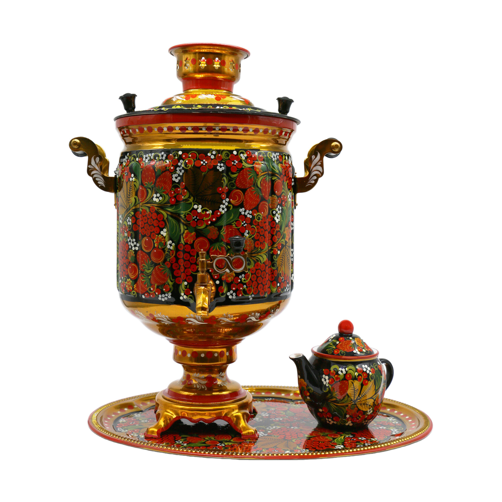 Самовар – металлическое устройство для приготовления чая. В старину воду в самоваре кипятили при помощи древесных углей, позднее же стали использовать электрический самовар. По сей день этот удивительный прибор пользуется большой популярностью. Наш электрический русский самовар произведен в Туле, имеет классическую форму, а также расписан в технике Хохлома, Гжель, украшен различными русскими мотивами, которые придают колоритный старинный вид. Все узоры качественно прорисованы, они не стираются и не выгорают, надолго сохраняют свой первозданный вид. Считается, что вода, вскипяченная в самоваре из Тулы мягче обычной, а чай вкуснее, чем из чайника. Чай, либо чайный напиток, приготовленный при помощи самовара, обладает ярким вкусом, насыщенным цветом и глубоким ароматом. Чаепитие с этим предметом русской старины становится более душевным, возвращает нас в детство и напоминает уютные вечера, проведенные у бабушки. В качестве альтернативы электрическому чайнику тульский самовар можно использовать дома, на тематических мероприятиях в русском стиле, а также преподнести в качестве оригинального подарка на юбилей, День Рождения, Свадьбу и другие праздники и поводы. Он точно понравится приверженцам русских традиций, любителям народных обрядов.