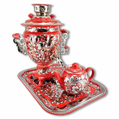 Купить Самовар электрический красный «Хохлома кудрина на серебре», 3 литра, с чайником и подносом с доставкой по всей России. Самовар электрический красный «Хохлома кудрина на серебре», 3 литра, с чайником и подносом: сравнение цен, характеристики, фото, актуальное наличие и цены.