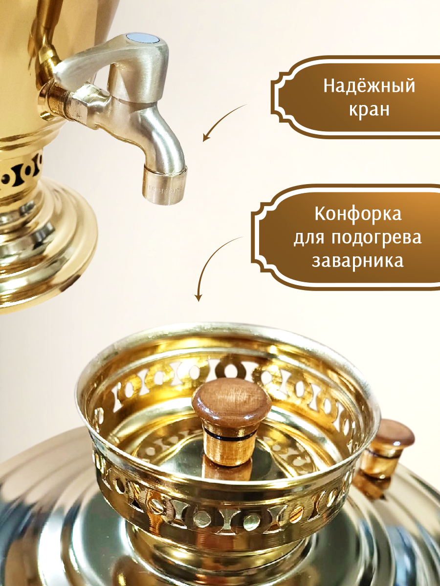 Самовар "Курай" оснащен топкой, расположенной внизу, на безопасном расстоянии от стола. Это обеспечивает удобство и безопасность использования. Нагрев воды происходит внутри самовара, что позволяет воде быстро закипать.