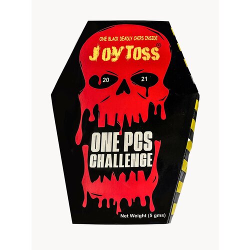 JOY TOSS это чрезвычайно острый чипс, разработанный для любителей сильных ощущений и экстремального вкуса. Он содержит в себе самые острые перцы мира, такие как Carolina Reaper, Ghost Pepper и Trinidad Scorpion, что приводит к уровню остроты в 2.2 миллиона единиц по шкале Сковилла. Чипс упакован в индивидуальную черную упаковку в виде черепа.