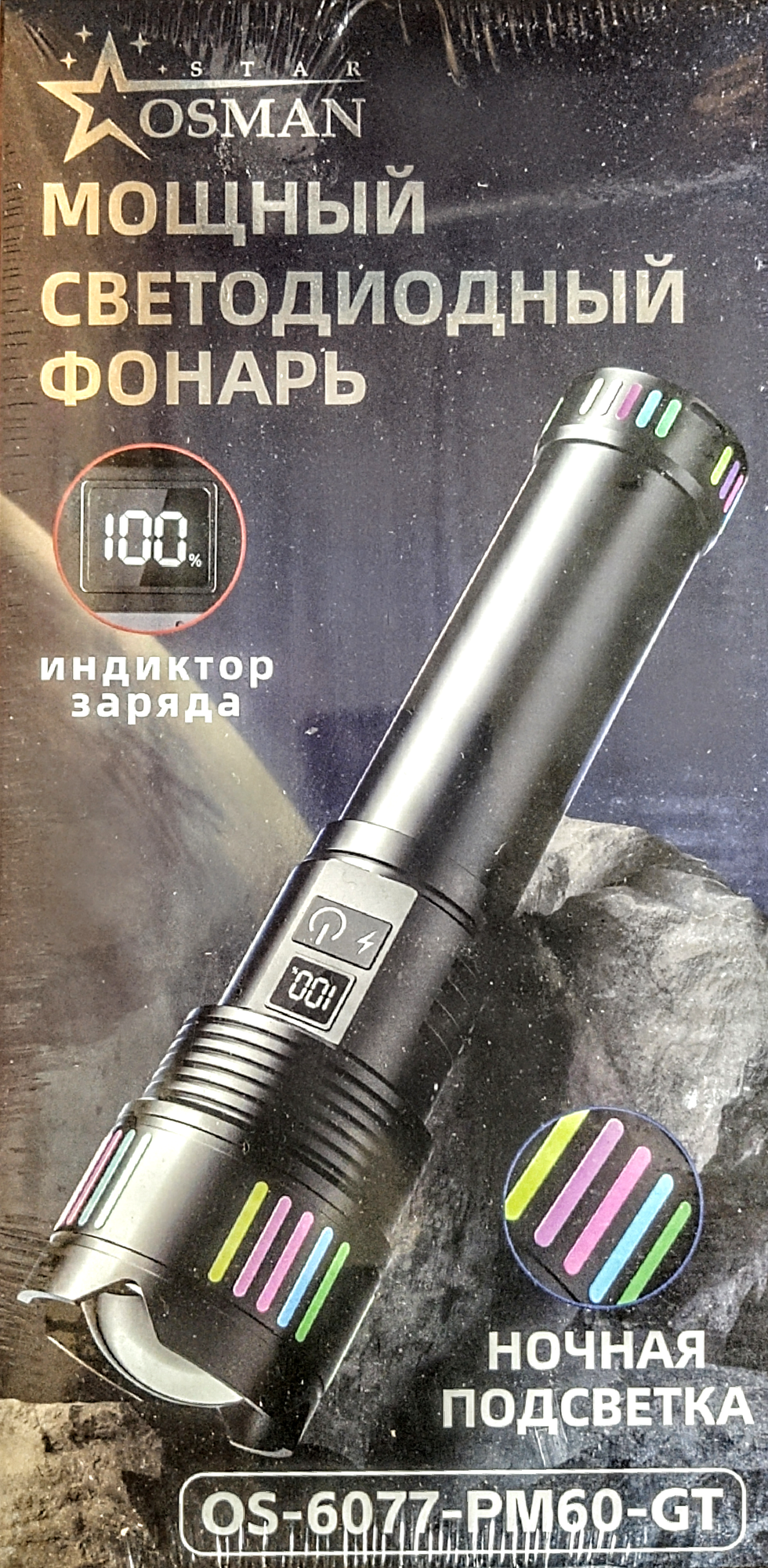 Сверхяркий. Встроенный зум. Встроенный бауэр банк, зарядка через USB кабель Type-C, есть возможность замены 8х аккумуляторов 18650.