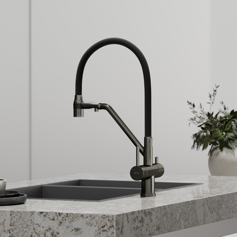 Купить Sancos Смеситель для кухни Sancos Dora с гибким изливом, цвет вороненая сталь/черный, арт. SC4003GG с доставкой по всей России.