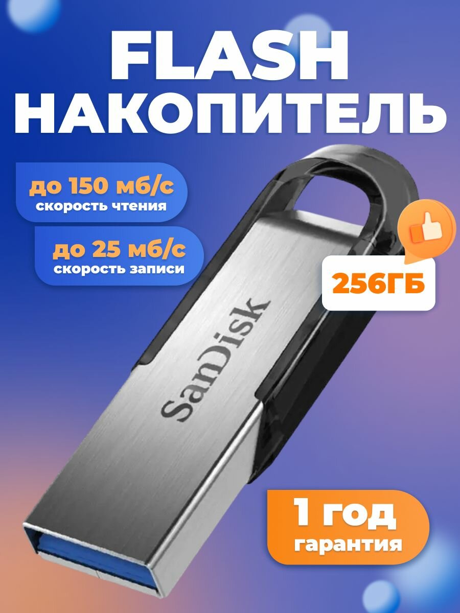 SanDisk 256 ГБ USB-флеш-накопитель Cruzer Ultra Flair SDCZ73-256G (Cruzer Ultra Flair SDCZ73-256G)USB 3.0, до 150 мб/сек