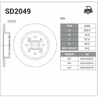 SANGSIN SD2049 (0K2A226251 / 0K2AA26251 / 0K2AA26251B) диск тормозной задний spectra / shuma (Комплект 2 штуки): сравнение цен, характеристики, фото, актуальное наличие и цены.
