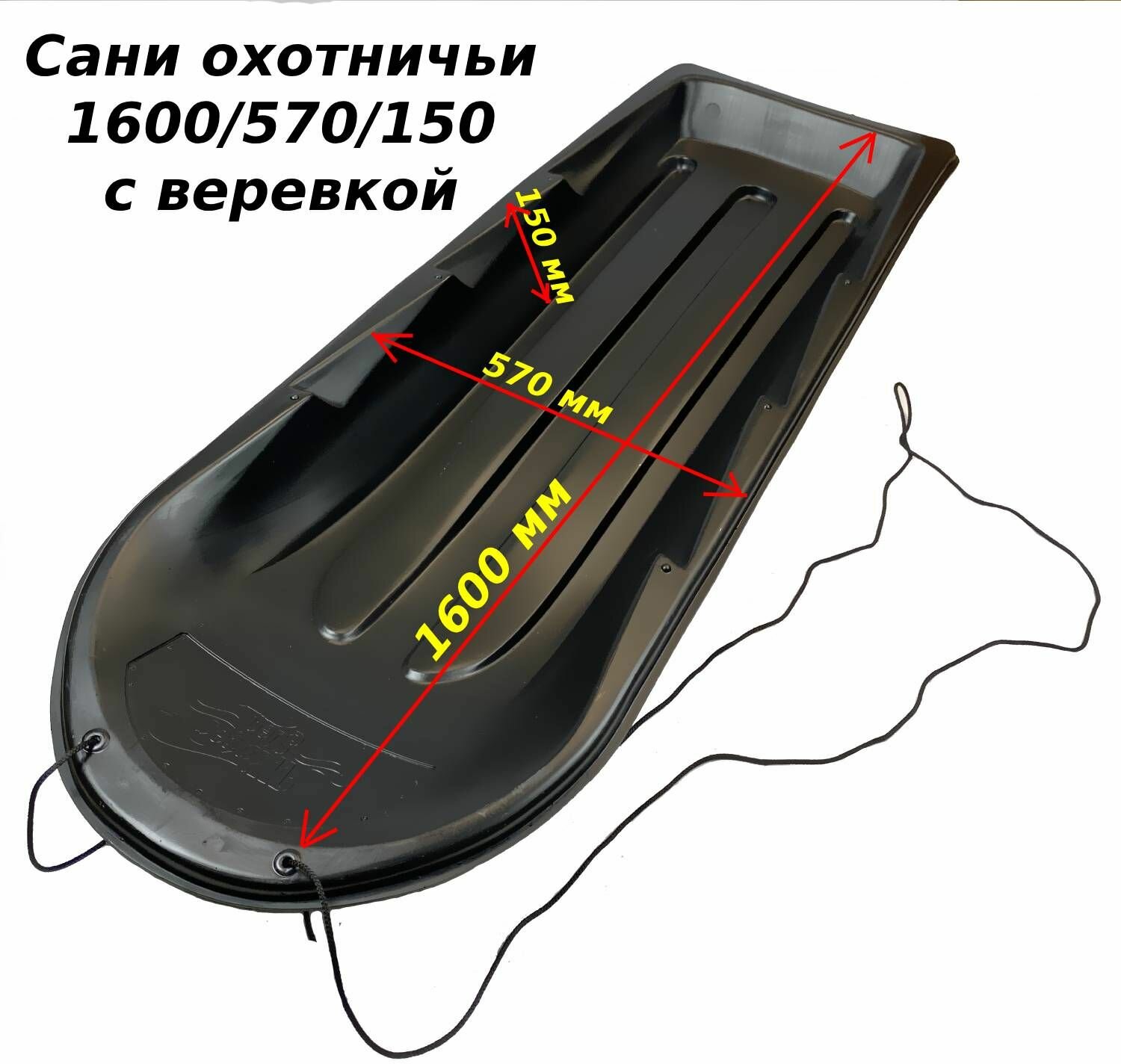 Сани Охотничьи 1600/570/150 мм (с веревкой) для зимней охоты, перевозки грузов, пластик: сравнение цен, характеристики, фото, актуальное наличие и цены.
