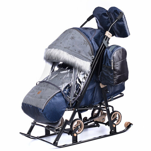 Купить Санки-коляска Galaxy Glory Gloss Сатин темно-синий + светоотражающая ткань с доставкой по всей России.