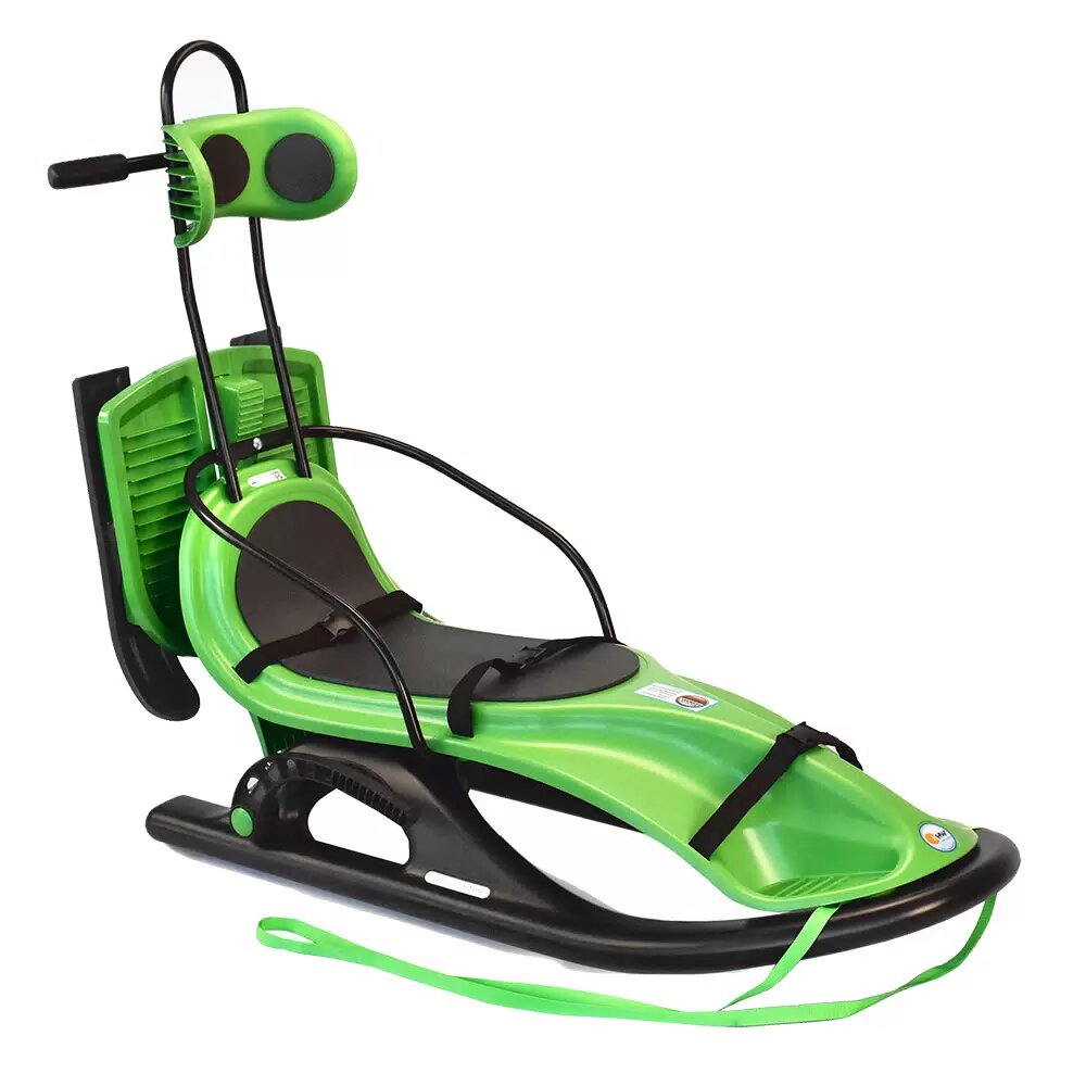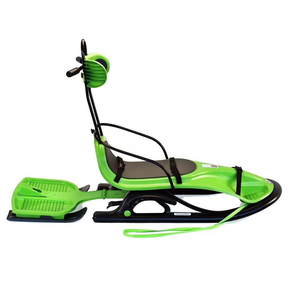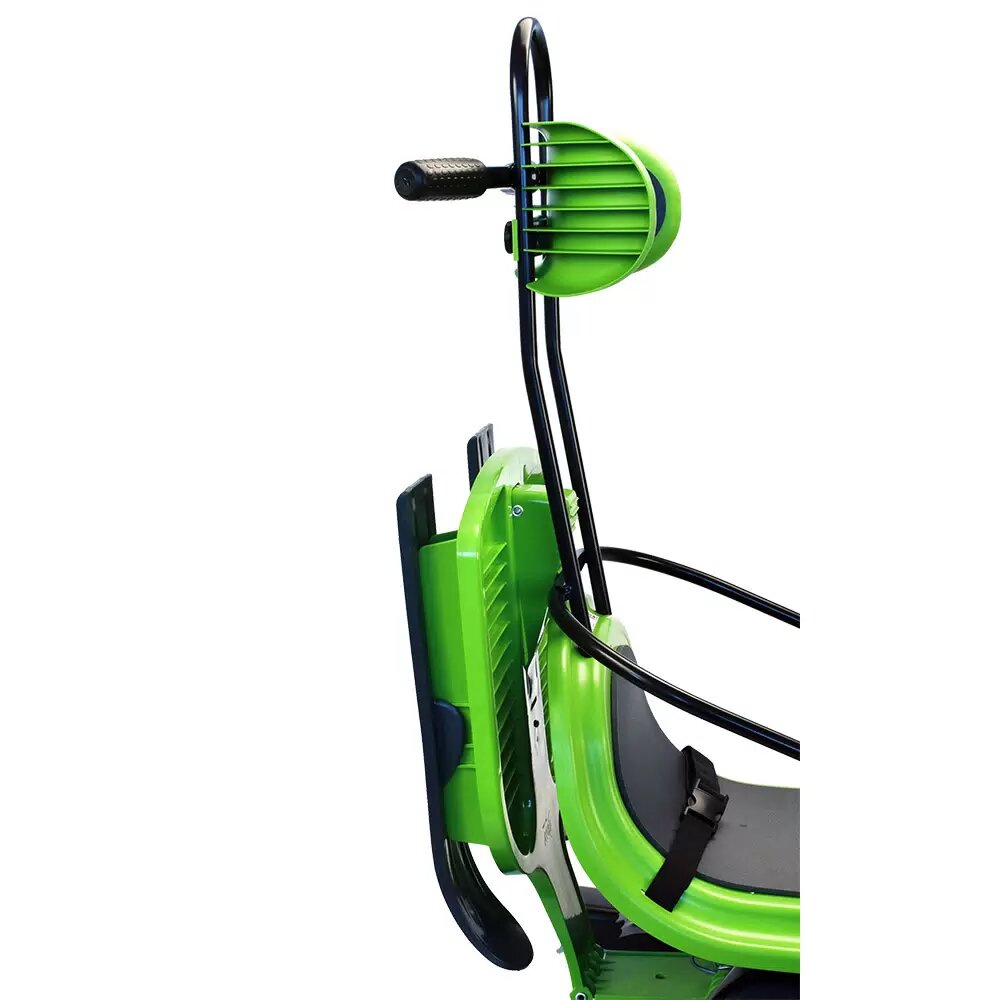 Две дополнительные задние лыжи и удобные ручки на высокой спинке позволяют перемещать сзади человека в положении стоя.