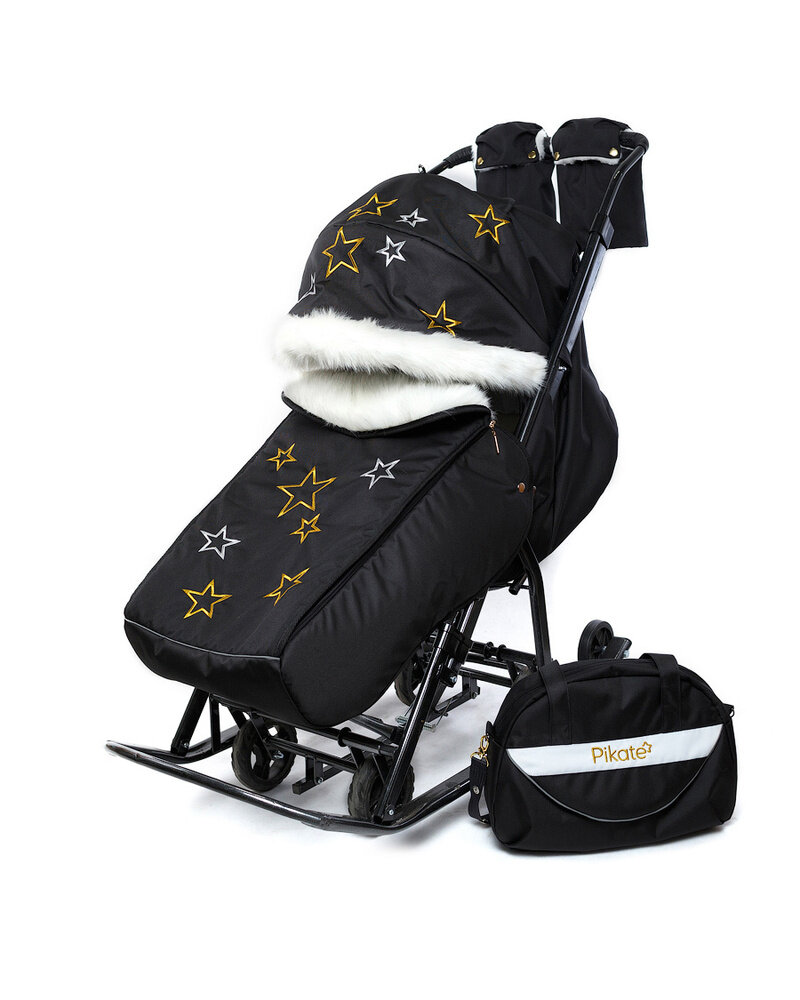 Купить Санки-коляска детские, зимние на колесах Pikate «Limited Edition» С бампером! 2024г. перекидная ручка с доставкой по всей России.