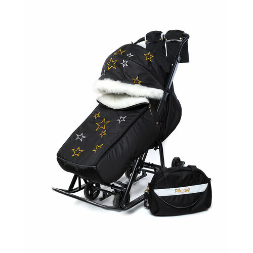 Купить Санки-коляска детские, зимние на колесах Pikate «Limited Edition» С бампером. Регулируемая спинка -3 положения (механическая) с доставкой по всей России.