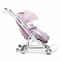 | Дополнительная информация | плоские полозья 40 мм, пятиточечный ремень безопасности, складной козырек, чехол для ног на молнии, светоотражающие элементы, широкое посадочное место, смотровое окошко для наблюдения за ребенком, выдвижные колеса на мягких шинах, регулируемая подножка, фиксатор козырька, удобный механизм качания, устройство автоматического сложения каркаса |