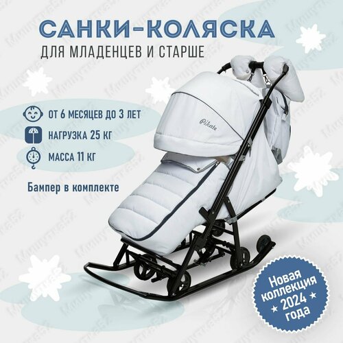 Купить Санки-коляска Pikate Onyx выдвижные колеса, перекидная ручка, сумка для мамы, цвет Белый с доставкой по всей России.