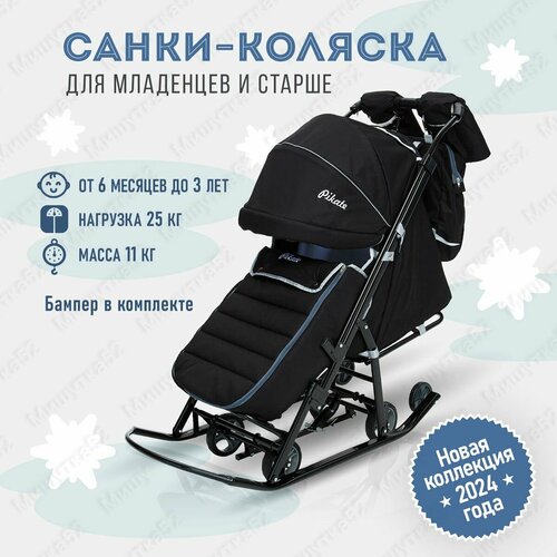 Санки-коляска Pikate Onyx выдвижные колеса, перекидная ручка, сумка для мамы, цвет Черный: сравнение цен, характеристики, фото, актуальное наличие и цены.