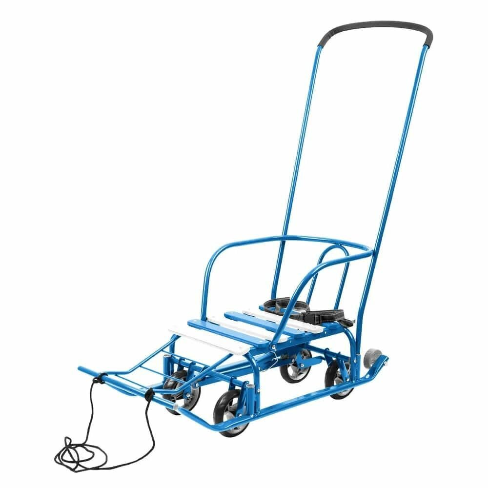 Дополнительно санки снабжены съёмным ручкой — толкателем, её можно переставить в начало санок, что позволит катить ребёнка к себе лицом.