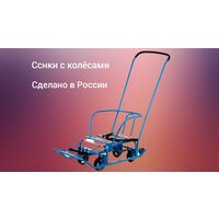 Санки «Тимка 5 универсал+» снабжены большими прорезиненными колёсами на выдвижном механизме. Они выдвигаются простым нажатием на педаль и тем самым позволят свободно передвигаться там, где нет снега.