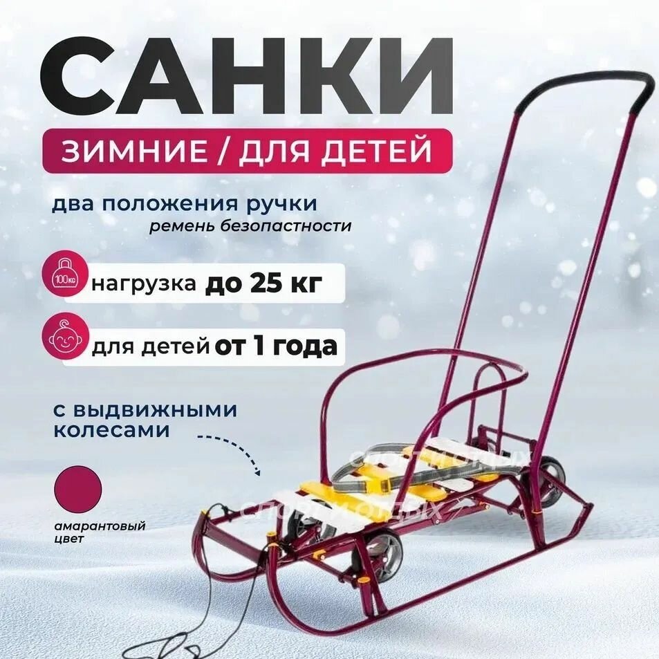 Купить Санки Тимка-6 с выдвижными колесами, Цвет амарантовый лак с доставкой по всей России.
