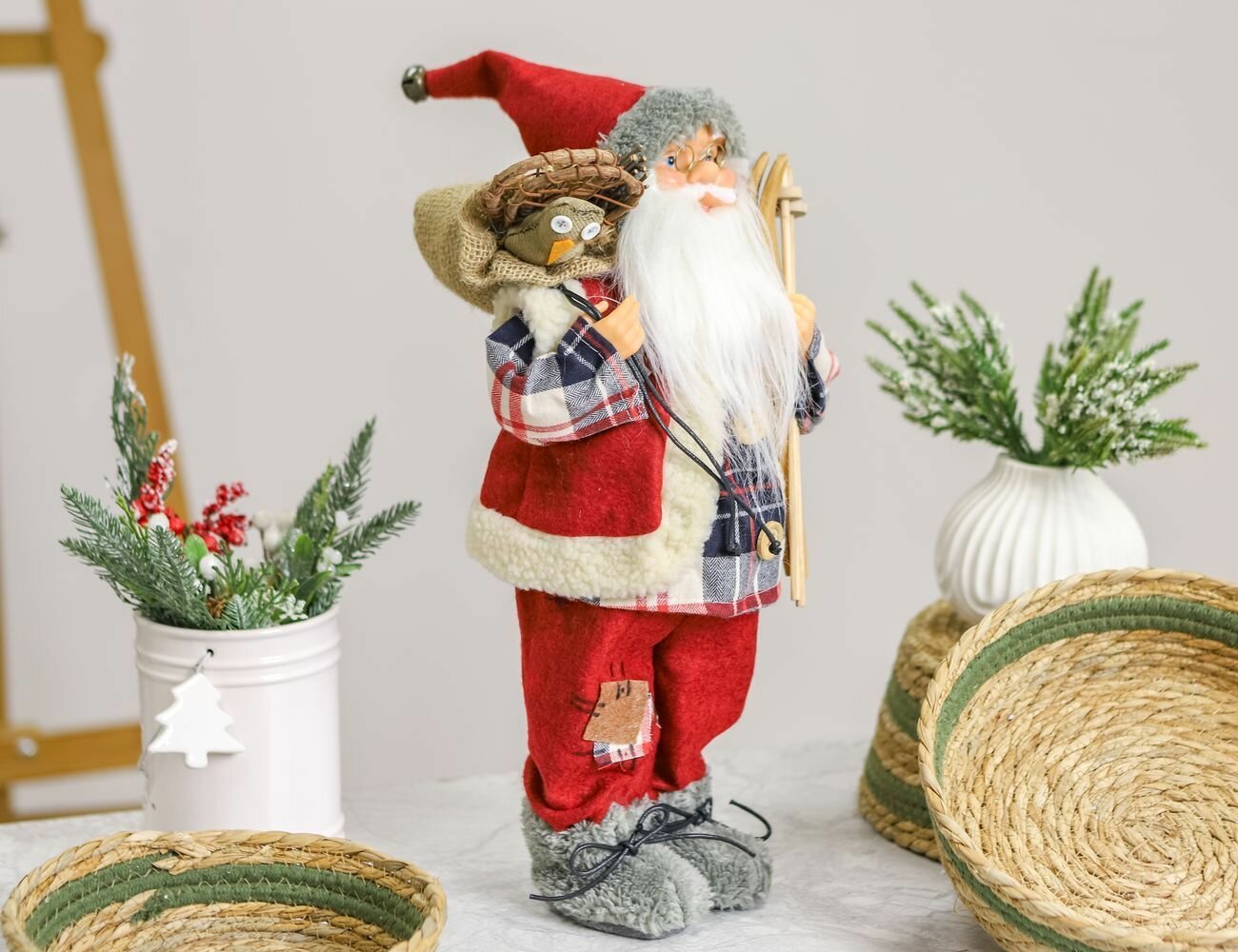 Купить Санта в клетчатой рубахе и безрукавке с лыжами, 42 см, Peha Magic GF-80610 с доставкой по всей России.