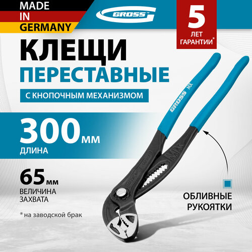 Клещи переставные, кнопочный механизм, обливные рукоятки, 300 мм Gross 15728
