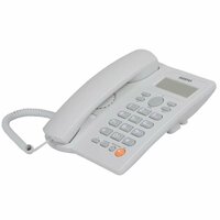 Проводной аналоговый телефон с необходимым набором функций и стильным дизайном выполнен из прочного пластика белого цвета. Его отличает 16-тизначный ЖК дисплей с часами и определение номера вызывающего абонента с памятью на 50 входящих номеров. Поддерживает необходимый функционал, характерных для аналоговых телефонов: спикерфон, быстрый набор номеров из памяти. Предусмотрена возможность установки аппарата на стену. Подключается к двухпроводной аналоговой линии. Питание от линии. Не требует программирования. Больше всего подойдёт для использования в офисах, на столах линейных сотрудников.