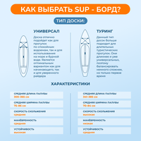 | Состав комплекта | весло, крепление, насос, плавник, ремкомплект, страховочный лиш |