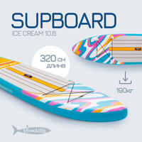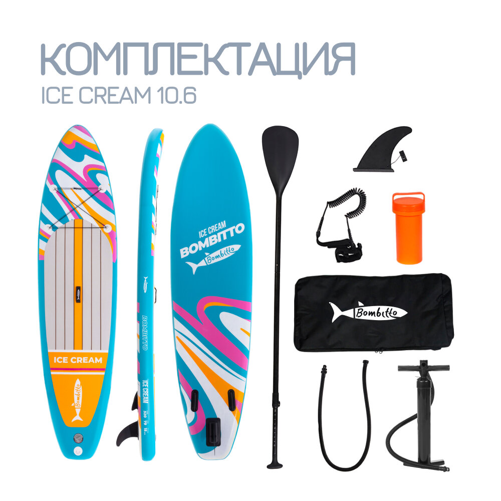 Сапбоардинг – разновидность активного отдыха, которая поначалу казалась модной диковиной, а затем стала таким же популярным и полноценным видом спорта, как езда на велосипеде или дворовой футбол. Это неудивительно, ведь на сапе можно получить массу впечатлений, особенно если это сапборд – резиновая доска для плавания от Bombitto Ice cream 10.6. SUP-борд Bombitto Ice cream 10.6 – плавательная доска из высокопрочного полимерного полотна с усиленной защитой швов, предназначенная для сапбординга как в пределах города и пригородной зоны, так и в далеких путешествиях.