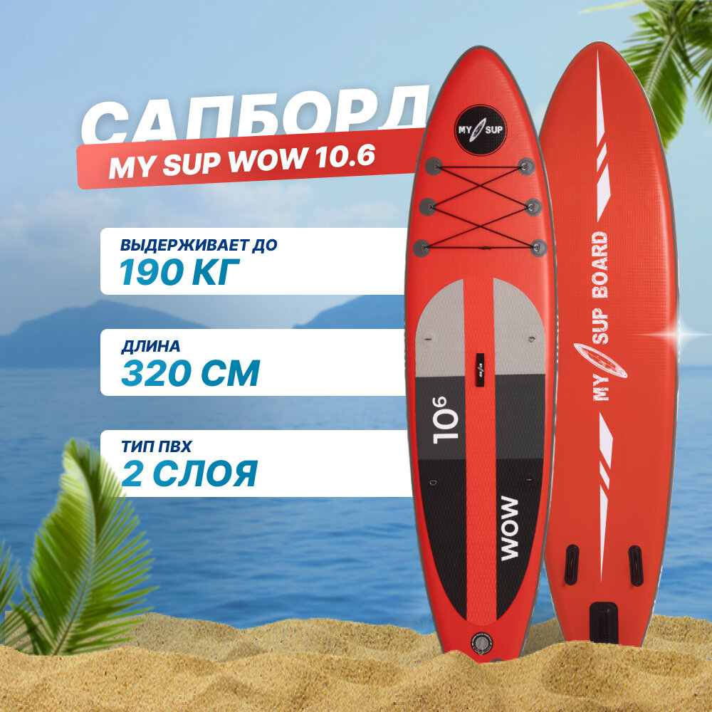 Сапбординг заявил о себе в мире активного отдыха сравнительно недавно, но вскоре сап доска для плавания и серфинга стала одним из самых популярных спортивных товаров. И это неудивительно – supbord очень компактное и удобное для хранение и транспортировки изделие (даже в сравнении с велосипедом или надувной лодкой), способное подарить массу позитивных эмоций – и не только тому, чей лозунг «Движение – жизнь». SUP-борд My Sup WOW 10.6 – универсальный сап для серфинга и плавания надувная из прочного двуслойного ПВХ. В таком спортивном инвентаре найдут для себя радость и активные спортсмены, любящие серфинг или длительные заплывы; и пенсионеры, которые ищут посильную физическую нагрузку, которая была бы и приятна, и полезна; и те, кто просто любит проводить отпуск и выходные на свежем воздухе и воды – но без громоздкого инвентаря и прочих сложностей. SUP-борд My Sup WOW 10.6 – это действительно минимум сложностей, поскольку в комплекс с этой доской для серфинга идет абсолютно всё, что потребуется во время заплыва: насос для надувания, весло для управления (весло, кстати, изготовлено из прочного, но гибкого полимера, не тонет в воде, поскольку полое, а на лодке предусмотрены ограничители для удобства управления); плавник для улучшения хода (один съемный в комплекте и один несъемный является частью лодки); ремонтный комплект, с помощью которого можно легко устранить большинство мелких повреждений сапборда, возможных во время эксплуатации. Хранить это всё (включая весло, т. к. оно разборное) можно в сумке, которая используется и для переноски сапа. Надувать сапборд My Sup WOW 10.6 с помощью ручного насоса несложно. Данная модель весит всего 10 кг, выдерживает вес до 190 кг (рассчитана на одного пассажира плюс некоторое количество поклажи), имеет более 3 метров в длину и более 70 сантиметров в ширину, что позволяет разместиться на нем с максимальным комфортом. Нескользящий коврик добавляет устойчивости во время движения, а карго-система на носу борда для плавания позволяет закрепить рюкзак и другие ценные вещи так, чтобы они не соскользнули в воду. Ещё один штрих к комфортности сапборда My Sup WOW 10.6 – наличие специальной ручки для транспортировки лодки (например, от одного водоема к другому, в надутом или сдутом состоянии). Маневренность и акцент производителя на безопасности делают бординг доску одним из лучших вариантов для новичков и профессионалов. С ней легко обучаться сапбордингу, приятно заниматься профессиональным серфингом и просто совершать небольшие прогулки по знакомым водоёмам или отправляться на рыбалку. Долговечная, легкая надувная доска для плавания My Sup WOW 10.6 позволит расширить горизонты привычного досуга и заняться чем-то новым и безусловно приятным. А доступная цена на сапборд, позволяющая недорого купить доску для серфинга, делает возможным покорение этих новых горизонтов ещё приятнее.