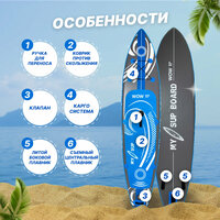 Сапбординг заявил о себе в мире активного отдыха сравнительно недавно, но вскоре сап доска для плавания и серфинга стала одним из самых популярных спортивных товаров. И это неудивительно – supbord очень компактное и удобное для хранение и транспортировки изделие (даже в сравнении с велосипедом или надувной лодкой), способное подарить массу позитивных эмоций – и не только тому, чей лозунг «Движение – жизнь». SUP-борд My Sup WOW 11.6 Windsurf – универсальный сап для серфинга и плавания надувная из прочного двуслойного ПВХ. В таком спортивном инвентаре найдут для себя радость и активные спортсмены, любящие серфинг или длительные заплывы; и пенсионеры, которые ищут посильную физическую нагрузку, которая была бы и приятна, и полезна; и те, кто просто любит проводить отпуск и выходные на свежем воздухе и воды – но без громоздкого инвентаря и прочих сложностей. SUP-борд My Sup WOW 11.6 Windsurf – это действительно минимум сложностей, поскольку в комплекс с этой доской для серфинга идет абсолютно всё, что потребуется во время заплыва: насос для надувания, весло для управления (весло, кстати, изготовлено из прочного, но гибкого полимера, не тонет в воде, поскольку полое, а на лодке предусмотрены ограничители для удобства управления); плавник для улучшения хода (один съемный в комплекте и один несъемный является частью лодки); ремонтный комплект, с помощью которого можно легко устранить большинство мелких повреждений сапборда, возможных во время эксплуатации. Хранить это всё (включая весло, т. к. оно разборное) можно в сумке, которая используется и для переноски сапа. Надувать сапборд My Sup WOW 11.6 Windsurf с помощью ручного насоса несложно. Данная модель весит всего 10 кг, выдерживает вес до 190 кг (рассчитана на одного пассажира плюс некоторое количество поклажи), имеет более 3 метров в длину и более 70 сантиметров в ширину, что позволяет разместиться на нем с максимальным комфортом. Нескользящий коврик добавляет устойчивости во время движения, а карго-система на носу борда для плавания позволяет закрепить рюкзак и другие ценные вещи так, чтобы они не соскользнули в воду. Ещё один штрих к комфортности сапборда My Sup WOW 11.6 Windsurf – наличие специальной ручки для транспортировки лодки (например, от одного водоема к другому, в надутом или сдутом состоянии). Маневренность и акцент производителя на безопасности делают бординг доску одним из лучших вариантов для новичков и профессионалов. С ней легко обучаться сапбордингу, приятно заниматься профессиональным серфингом и просто совершать небольшие прогулки по знакомым водоёмам или отправляться на рыбалку. Долговечная, легкая надувная доска для плавания My Sup WOW 11.6 Windsurf позволит расширить горизонты привычного досуга и заняться чем-то новым и безусловно приятным. А доступная цена на сапборд, позволяющая недорого купить доску для серфинга, делает возможным покорение этих новых горизонтов ещё приятнее.