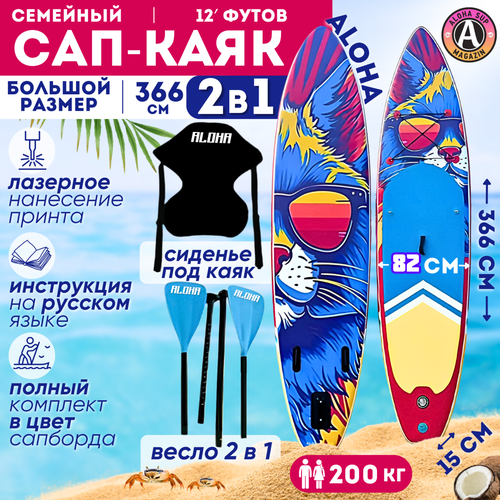 Надувная sup-доска ALOHA СИНИЙ КОТ 12' x 32" x 6" сап-каяк 2 в 1.