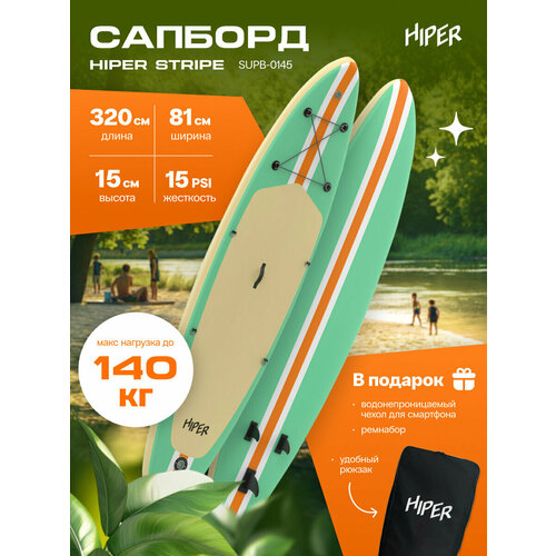 Купить Сапборд HIPER STRIPE SUPB-0145, 320/81/15, давление 15 PSI, выдерживает до 140 кг, зеленый/оранжевый с доставкой по всей России.