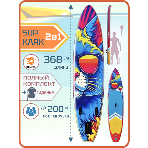 Купить Сапборд каяк ALOHA Кот 12 футов, с двойным веслом, с сиденьем с доставкой по всей России.