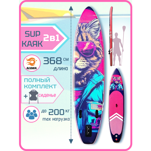 Надувная SUP доска - каяк 2 в 1 ALOHA 12'0 x 33" x 6" с полным комплектом аксессуаров.